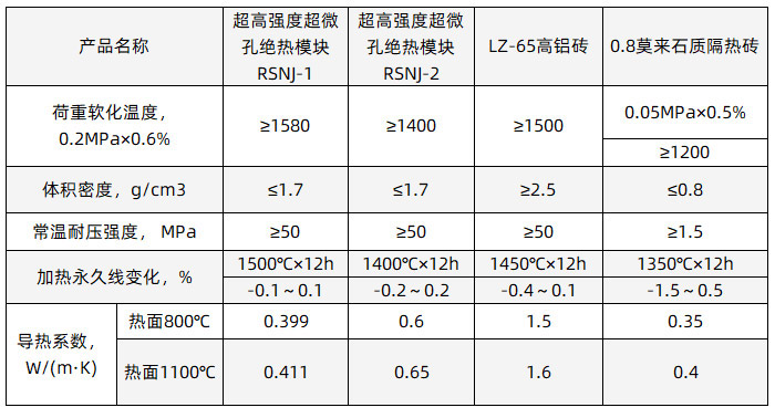 超高強度超微孔絕熱模塊兼顧了體密在2.3g/cm3以上重質(zhì)磚的耐壓強度的同時,又具備了體密在0.8g/cm3的輕質(zhì)磚的導熱系數(shù)。