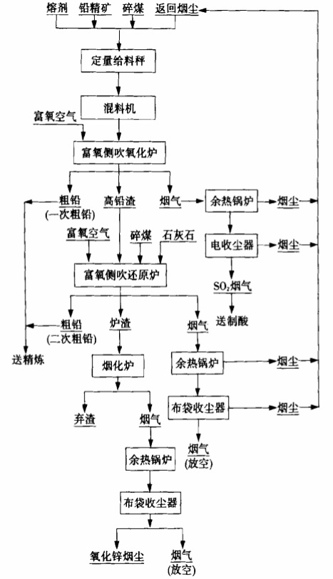 2)富氧側(cè)吹直接煉鉛工藝流程