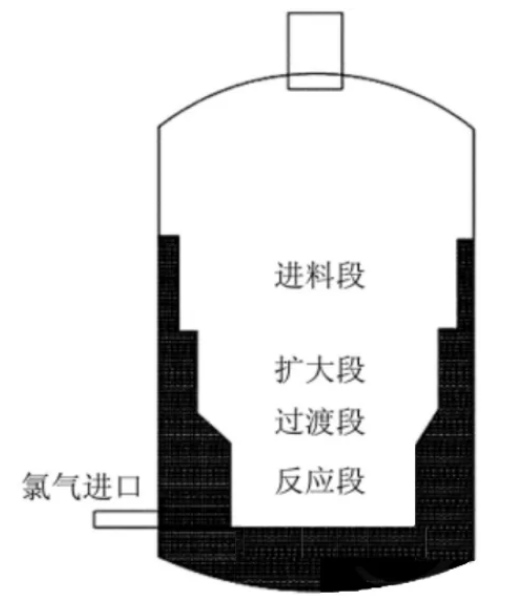 2、擴大段。沸騰氯化爐上部是用于降低氣流速度,而使得未反應(yīng)的物料在重力作用下返回至反應(yīng)段繼續(xù)進(jìn)行反應(yīng),有效利用物料。
